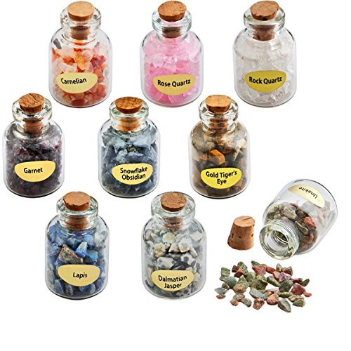 - Style:9 small different gemstone birthstone wishing bottle amulets,will be sent by random from available lot of Rose Quartz,Rock Quartz,Carnelian,Garnet,Tige's Eye,Unakite,Lapis Lazuli,Dalmation Jasper and Snowflake Obsidian.