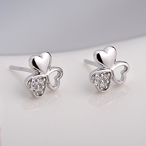 - Title : Acxico 925 Sterling Silver Heart Shape Hollow out Three Leaves Clover with Crystal Inlaid Stud Earrings