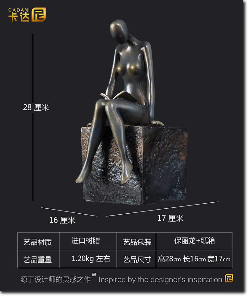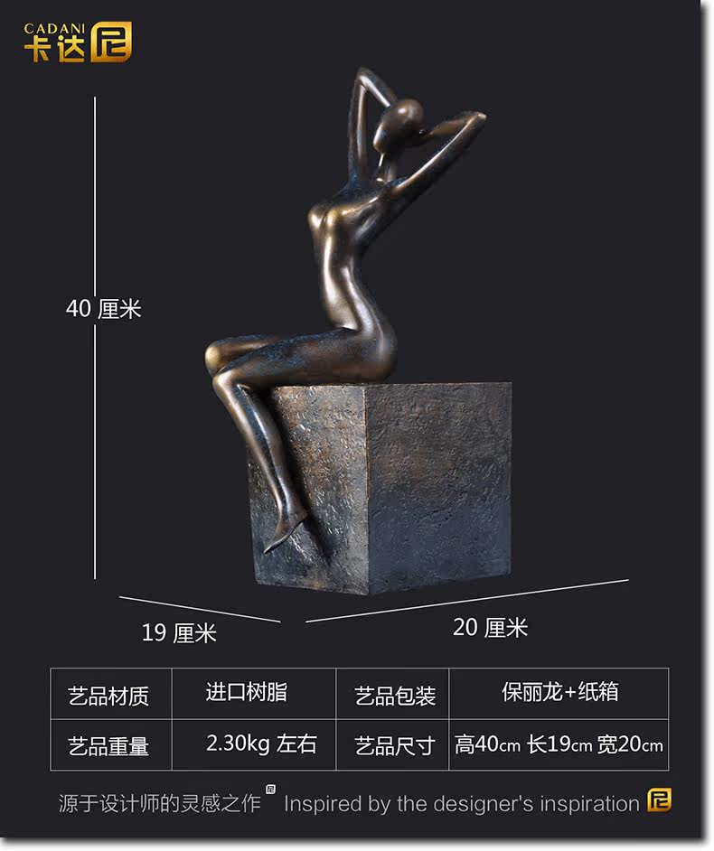 卡达尼欧式风格树脂工艺优雅坐姿裸女摆件家居饰品书房客厅装饰品