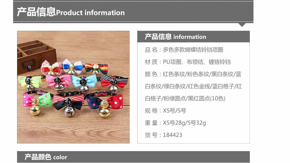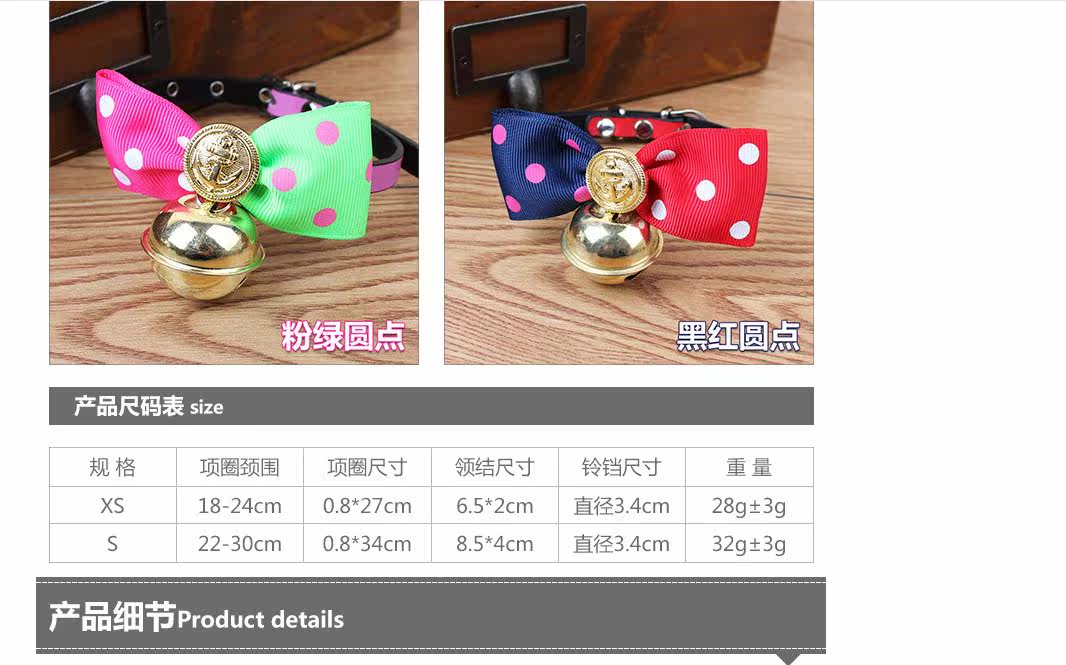 Material: PU collar, tie cloth, chrome bell