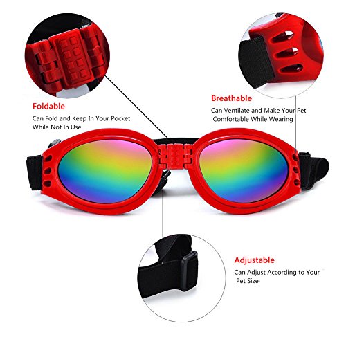 King Tsing Fashionable and Adjustable Dog Sunglasses, Greatly Protect Your Lovely Pet Against UV, Wind, Water, Debris and Frog.