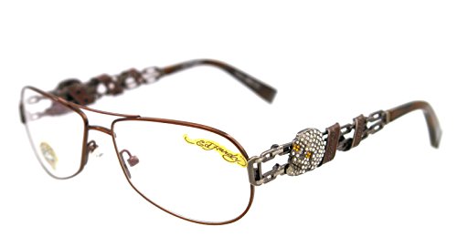 -. Brand : Ed Hardy -. Department : mens -. Feature : Round shape full frame eyeglasses / Tattoo Skull design on temples with the Ed Hardy logo detail / Adjustable nose pads and sP.R.Ing hinges for added comfort / Includes: case, cleaning cloth, authenticity card, and replacement hardware. / Eye: 57 mm Bridge: 15 mm Temple: 140 mm -. Model : EHO705 -. ProductGroup : Apparel -. ProductTypeName : EYEWEAR -. Title : Ed Hardy EHO-705 Men's Designer Eyeglasses