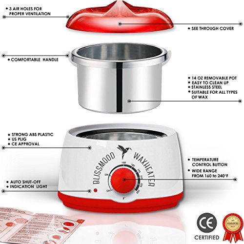 -Enjoy your stylish mini salon take professional care of your beauty right within your home - get gorgeous feel happy with BLISS MOOD! -Wax melting pot with generous capacity - can melt reasonable quantity of wax at once -With aluminium melting pot inside, the warmer doesn't pose any risk of introducing harmful chemicals or toxics into your wax - safe for your skin -ABS plastic outer body is sturdy and safe for use at high temperatures - doesn't melt like inferior quality plastics -Hard wax offers way better hair removal as it sticks to the hair only rather than skin, and thus also significantly reduces the pain -Removes hair from root and reduces waxing frequency -Indicator light keeps you informed of the warmer On/Off status