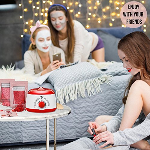 -1 Wax Warmer Heater -4 x 100 g hard wax bean packs in 4 different fragrances - rose, black currant , chocolate strawberry -10 Wooden applicator sticks -Easily Comprehensible Instructions