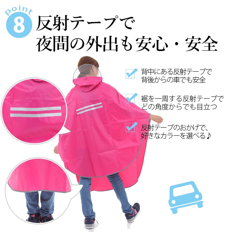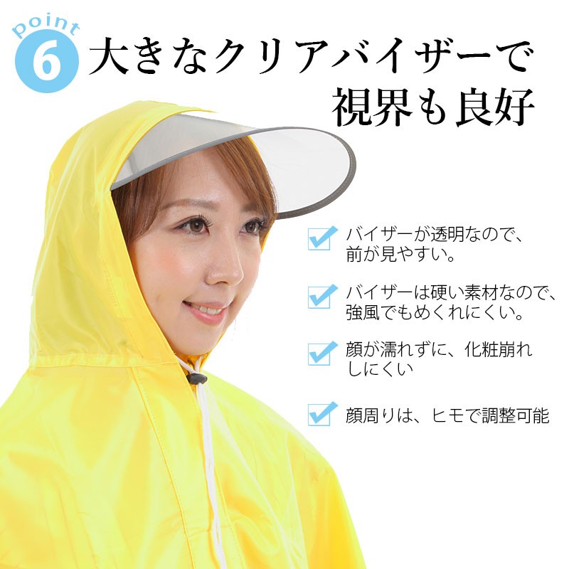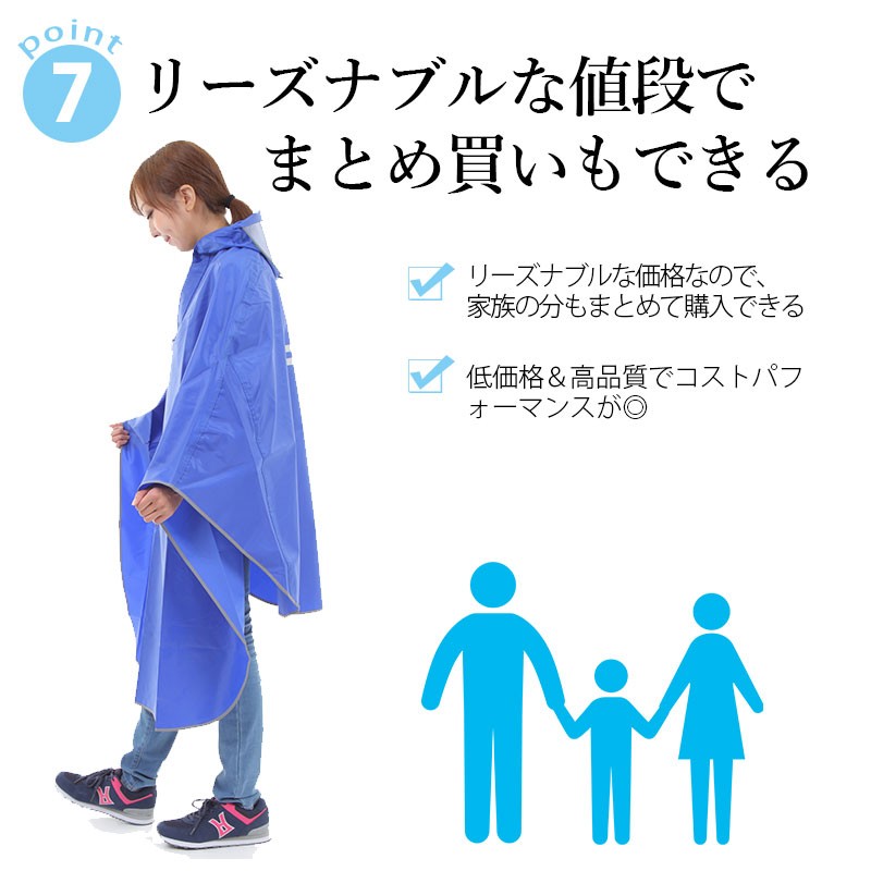 自転車用に前のほうがロングの設計となっており、雨天時も快適にお出かけができます。