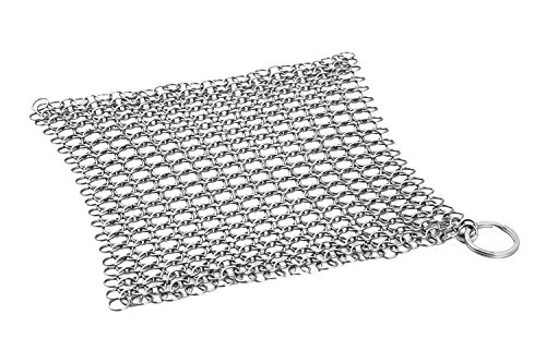 THE ULTIMATE SOLUTION FOR CLEANING CAST IRON -TOUGH - Built to last as long as your cast iron products -SIMPLE - Easy to use, clean, and store -LOVED - Used by cast iron enthusiasts worldwide To Clean or Not to Clean...that was the question! A properly spiced cast iron skillet is simply a family treasure. Getting the perfect flavor into a pan takes time and plenty of elbow grease. Conventional Cast Iron Cleaners run the risk of all those spices and efforts going down the drain. -Standard cleaning supplies strip away years worth of pan spicing efforts. -Caked on grit can prove very difficult to remove -Kitchen Sponges are 200,000 times dirtier than a toilet seat with 10,000,000 bacteria per square inch! THE RINGER - Tough on Grit, Gentle on Flavor Focused on flavor preservation from the beginning, THE Ruro was engineered to remove grit with ease and stand the test of time. -Soapless, detergent-free grit removal with just warm water -Rustproof Stainless Steel Chainmail Rings -Convenient hanging ring Money Back Guarantee Simply Put - We want the purchase to work for you. If for any reason this product is not meeting your expectations, just send us a note and we'll be happy to take care of you.Feature