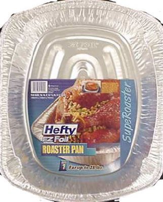 -. Feature : "E-Z FOIL" ALUMINUM FOILWARE SUPER ROASTER PAN / Heavy-duty construction. / Holds a 25 lb. turkey. / Innovative shape facilitates basting. / Convenient, disposable, no clean up.