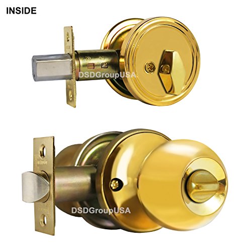 -. Title : "Constructor" "Chronos" Combo Entry and Deadbolt Single Cylinder Keyed-Alike Polished Brass Finish Door Lever Lock Set Knob Handle Set