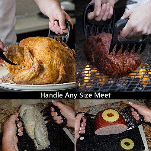- 2. MEAT HANDLER FORKS NEVER LOSE GRIP - bear paw shaped so you can pick up and carry hot foods in the kitchen without dropping them or burning your hands. Ergonomic grip handles make pulling and shredding meat quick and easy