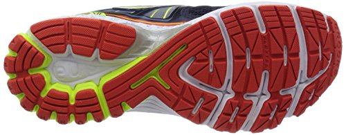 Heel-to-midfoot Segmented Crash Pad provides amazing cushioning and smooth heel-to-toe transition with independent fully integrated shock absorbers (shaped like a caterpillar). Omega Flex Grooves provide stability and flexibility. DRB Accel: Provides torsional rigidity and support to midfoot.