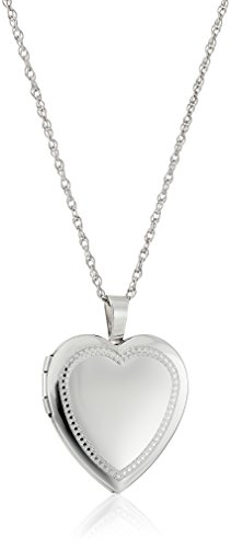 -. Title : Sterling Silver Heart Millgrain-Edge Locket Necklace, 18"