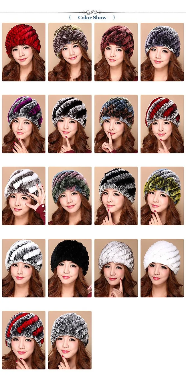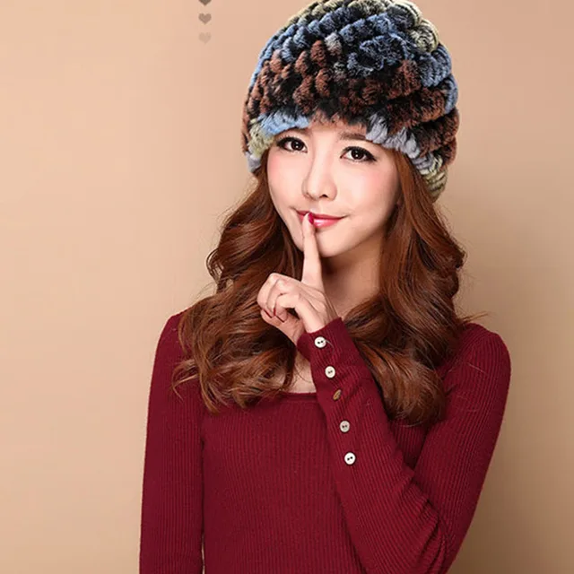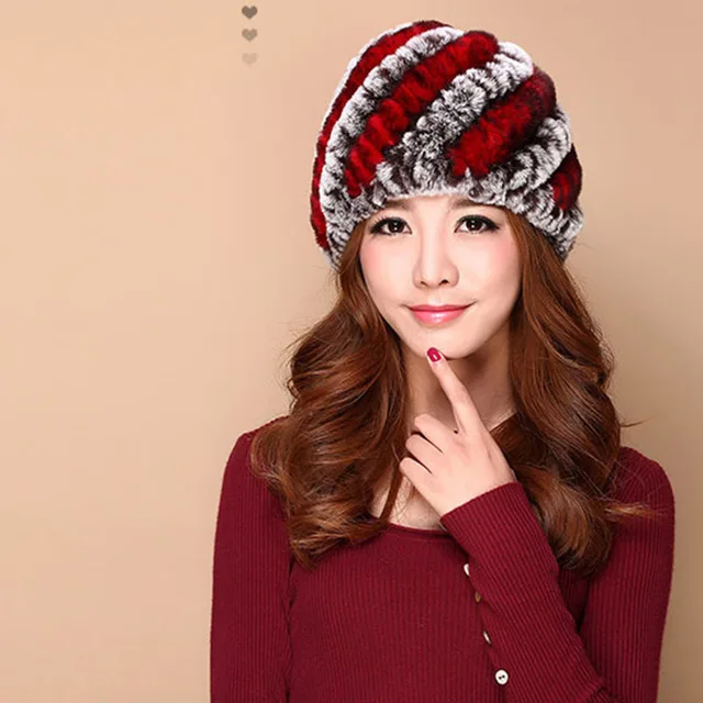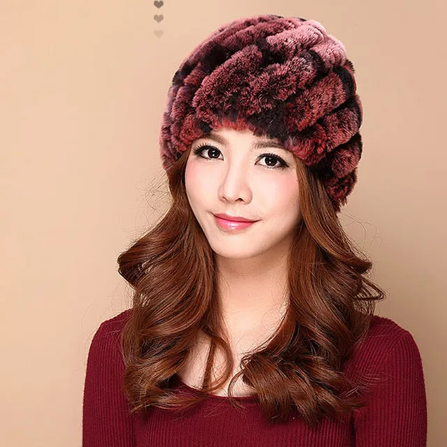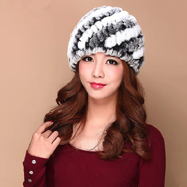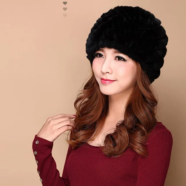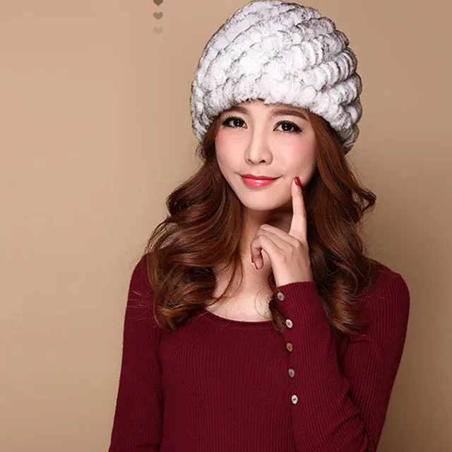 | [해외]럭셔리 가을 겨울 여성 정품 리얼 니트 렉스 토끼 모피 모자 수제 레이디 따뜻한 모자 여성 진짜 모피 비니 모자 |