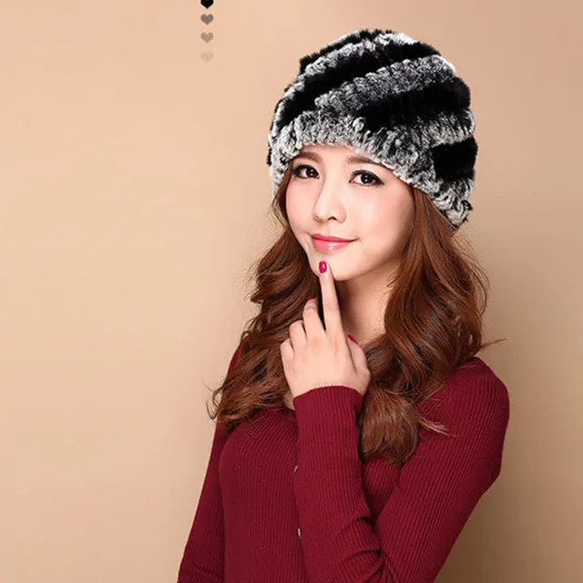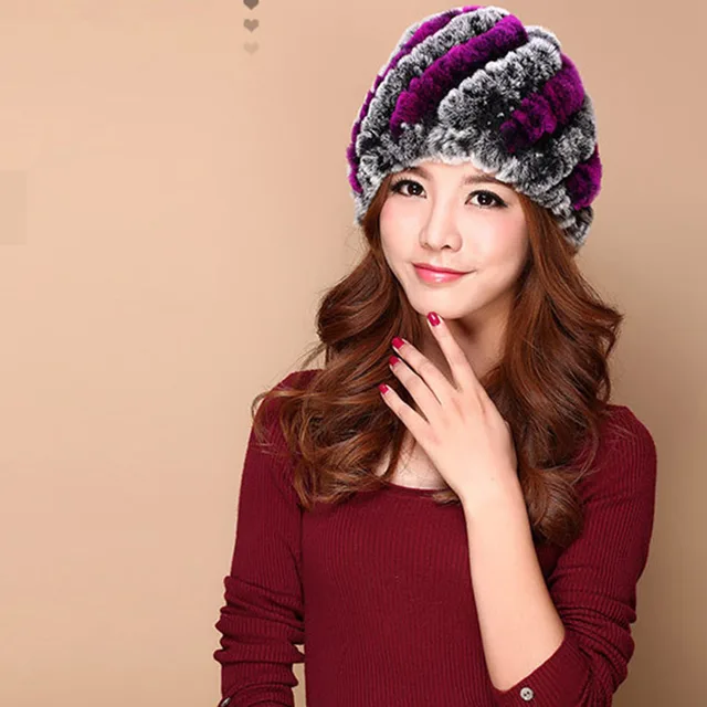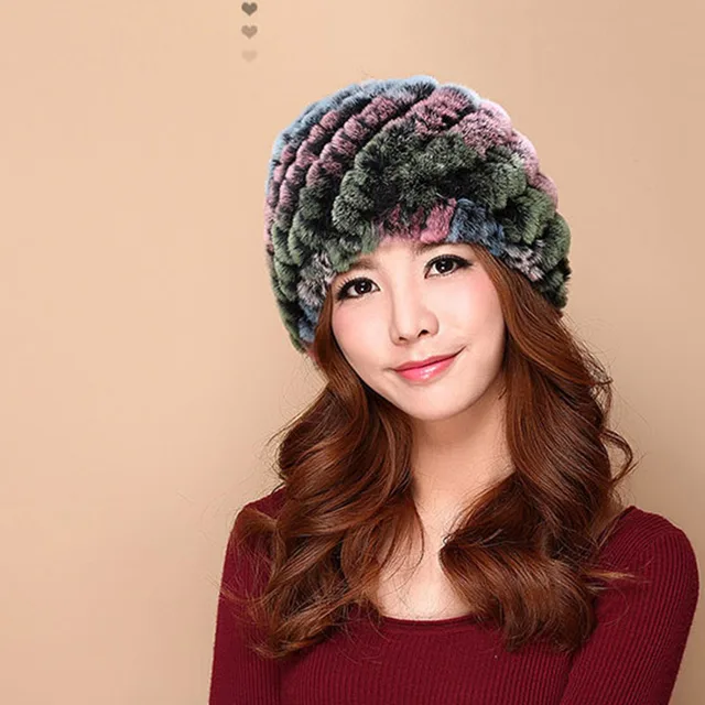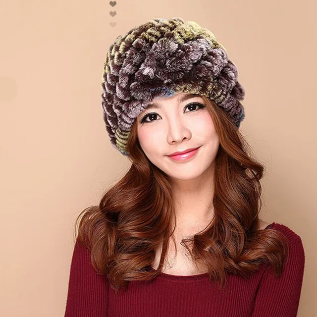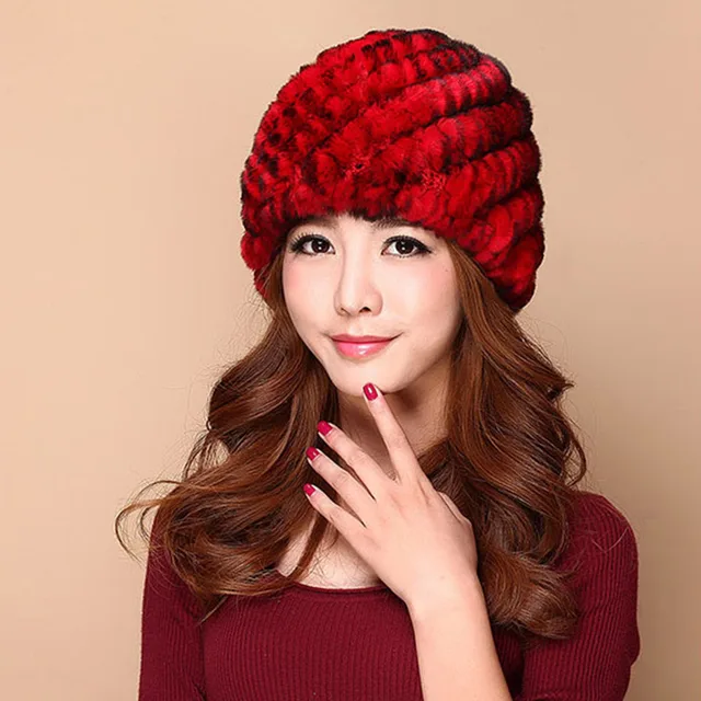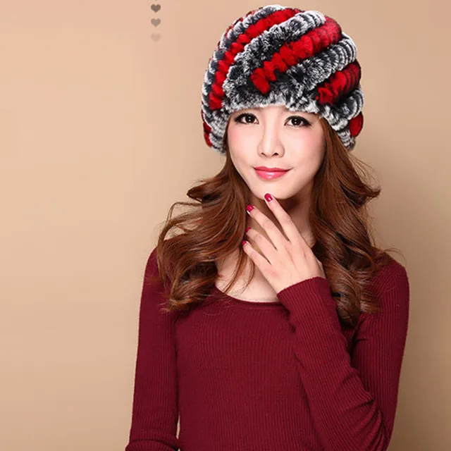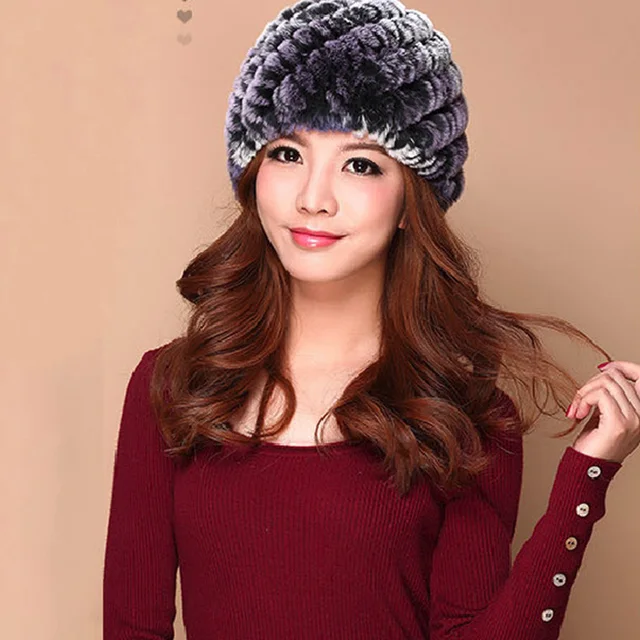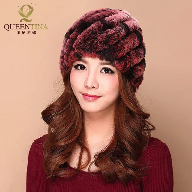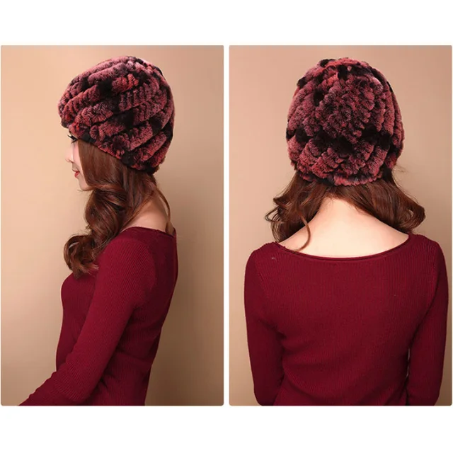 | [해외]럭셔리 가을 겨울 여성 정품 리얼 니트 렉스 토끼 모피 모자 수제 레이디 따뜻한 모자 여성 진짜 모피 비니 모자 |