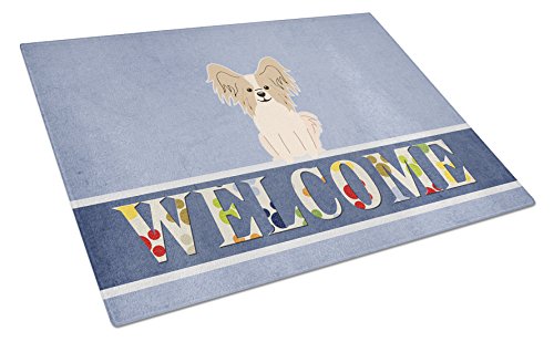 Caroline's Treasures Papillon Sable White Welcome Glass Cutting Board Large, Multicolor