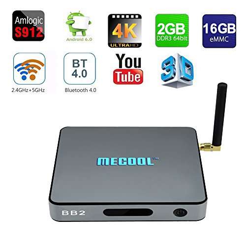 Studio : Mercu Publisher : Mercu Binding : Wireless Phone Accessory Product Description Mercu Smart BB2 TV Box is powered by Amlogic S912, the high machine configuration provides users a better experience of ultra-fast running speed and professional image processing ability. Hardware Specifications: CPU: Amlogic S912 64 bit Octa core ARM Cortex-A53 CPU up to 2 GHz GPU:ARM Mali-T820MP3 GPU up to 750MHz (DVFS) SDRAM :2GB DDRIII FLASH:16GB ROM Flash ( 8~32GB Optional ) WiFi:Built in 2.4G/5G WiFi Support IEEE 802.11 a/b/g/n/ac Blutooth:Bluetooth 4.0 LAN Ethernet:10/100M/1000M RGMII Features: OS:Android 6.0 marshmallow Video decorder:H.265 4K @60fps 10btis, VP9 Profile 2, H.264 4K @30fps, AVS 1080P @60fps Video encorder:H.264 1080P @60fps HDR:HDR 10, Dolby Vision DRM:Optional :Microsoft Playready¡e?Verimatrix ,Google Widevine Level1;Supported:Google Widevine Level3" Media format:Avi/Rm/Rmvb/Ts/Vob/Mkv/Mov/ISO/wmv/asf/flv/dat/mpg/mpeg Music format:MP3/WMA/AAC/WAV/OGG/DDP/TrueHD/HD/FLAC/APE Photo format:HD JPEG/BMP/GIF/PNG/TIFF Network Function:Miracast, Airplay, Skype chatting, Picasa,Youtube, Flicker, Facebook, Online movies, etc Port 1* HDMI output 1* 3.5 Phone out CVBSL/R output 1*SPDIF output 1* RJ45 LAN Ethernet 10M/100M/1000M Power Supply: DC 5V/2A 2* High speed USB 2.0 1* TF CARD Package List: 1 * Android TV Box 1 * Power Adapter 1 * Remote Control 1 * User Manual 1 * HDMI Cable