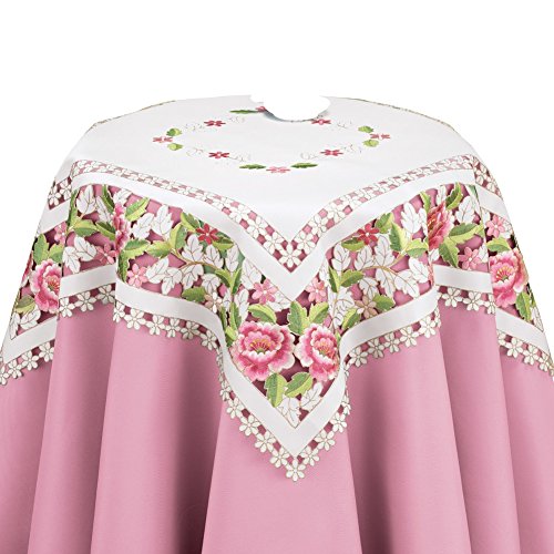 -. Feature : Features a white background with embroidered pink roses, greenery and daisies / Perfect on its own or with a coordinating tablecloth underneath (sold separately) / Made from machine washable polyester / Available either as a Runner (68"L x 13"W) or Square (34"Sq.) / Shop with confidence! For over 50 years, Collections Etc has been bringing unique, whimsical, inspirational, and home solution products to customers. All Collections Etc products come with a 60 day, easy return policy and 100% satisfaction guarantee