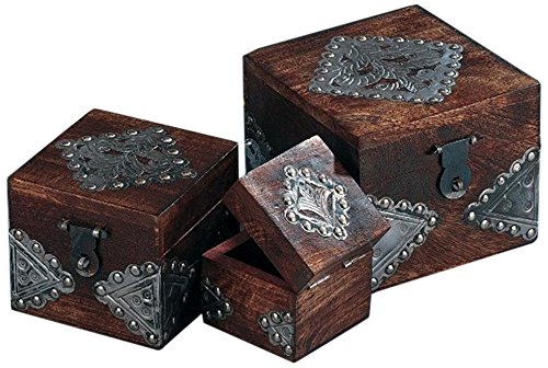 StealStreet SS-IA-WB267 3 inch Antique Style Wood Box with Metal Accents