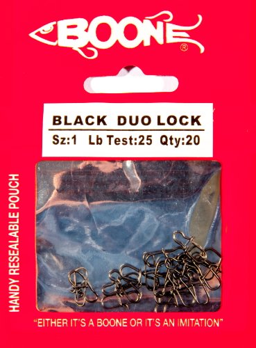 - Feature : Boone Terminal Tackle- / Quality black duo-lock snaps size 1 / Test equals 25 lb. / Designed to tie leader with hook, with dead bit / Color black qty. per pack 20