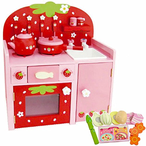 원본상품명: 【2/9~ハンバガセット付き】 木のおままごと 野 つぶつぶ赤 グリルキッチン カレ&シチュセット付き