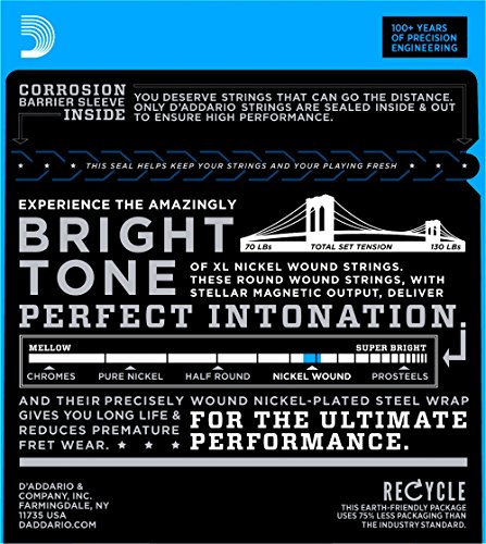 Product Description D'Addario XL Electric Guitar strings are world-renowned as "The Player's Choice" amongst guitar players of all genres and styles. XL strings are wound with nickelplated steel and are known for their distinctive bright tone and excellent intonation. 0