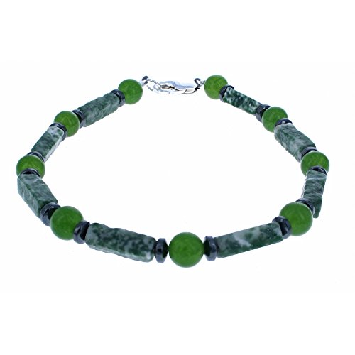 -. Title : Ladies Green Serpentine, Tree Agate, Hematite (Hemalyke) & Sterling Silver Beaded Gemstone Anklet