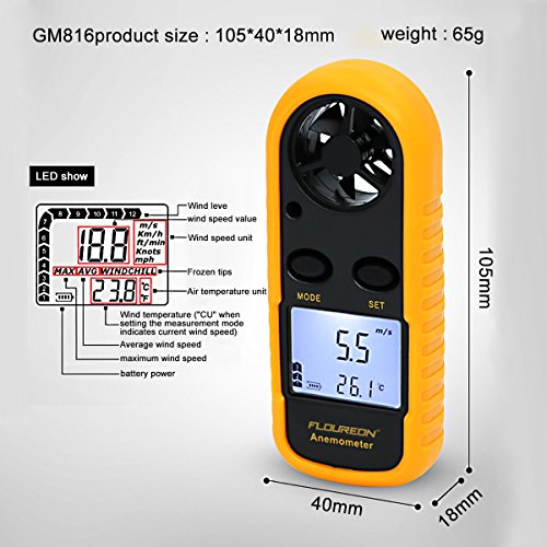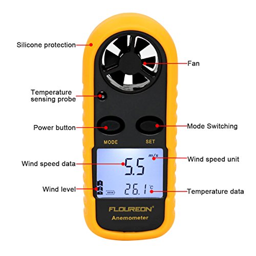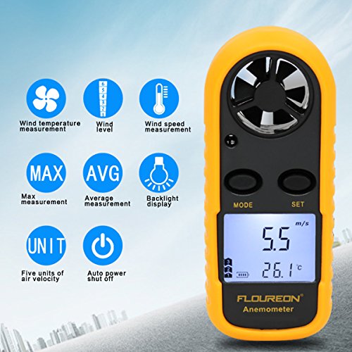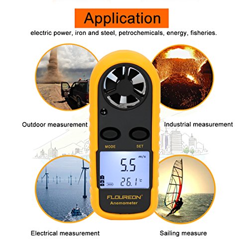 ▲ FLOUREON Handheld LCD Digital Anemometer with Backlight: Use to Measure Wind Speed and Temperature