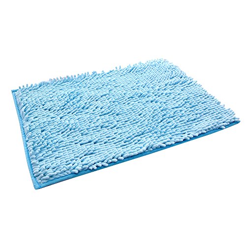 Kaimao Chenille Non-slip Bath Mat Rug Washable Soft Shaggy Absorbent Multipurpose Shower Mat Carpet 15.7 x 23.6 inch - Light Blue