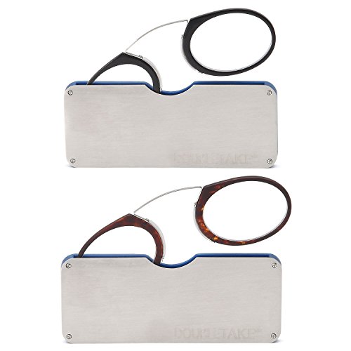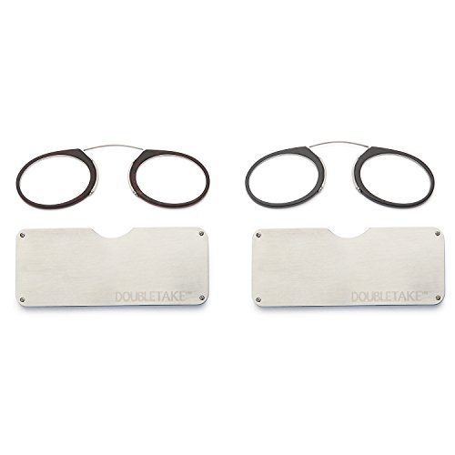 Great things come in twos and who doesn't love a good deal? DoubleTake is here to provide quality eyewear that will have people taking a second look, without taking a lot out of your wallet. Our glasses are effective, comfortable, compact, and elegantly designed - and best of all, they come in pairs. So not only are you covered night and day, home and office, work or vacation, you also get the most out of your money. We offer glasses in a wide selection of styles from classic rimless frames to vintage-inspired glasses with a modern spin. Find your match today! Looking for a reading glasses solution that is lightweight and make a statement? Then look no farther than DoubleTake Pince-Nez Readers. Pince-Nez, literally "pinch nose" in French, is a style of super lightweight glasses that firmly sit on the bridge of your nose without earpieces. We took this old school look that has graced the faces of Teddy Roosevelt and The Matrix's Morpheus, and made it modern with a nylon frame to ensure a comfortable fit. Each reader comes with a small and slim hard carrying case to ensure your readers are protected. With your pair of DoubleTake Pince-Nez Readers, you will be reading ready and stylish wherever you go. Features: - 2 DoubleTake Pince-Nez Readers for the price of 1 - Reading glasses sit firmly on your nose without earpieces - Nylon frame for lightweight and comfortable wear - Each reader comes with a small and slim hard carrying case for protection and ultra portability - Choose your magnification 0 |