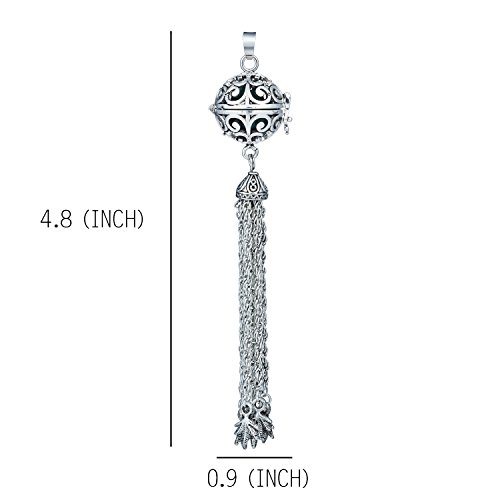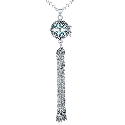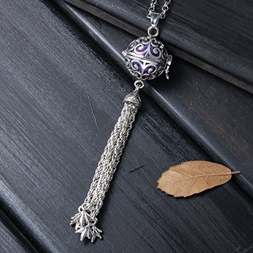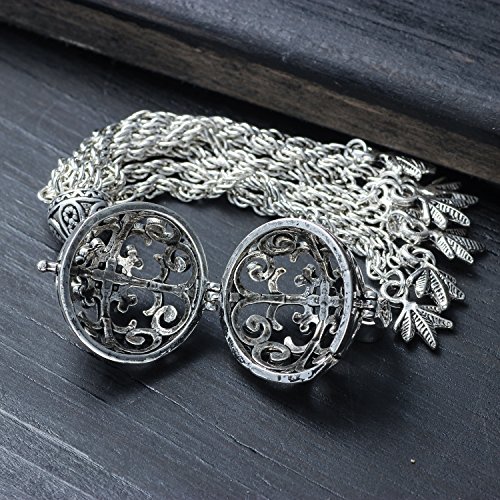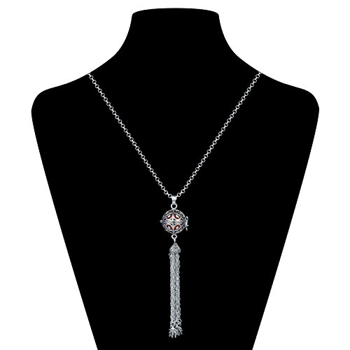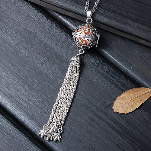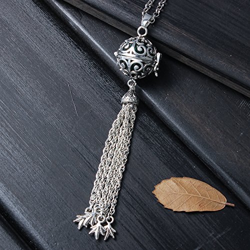 -. Title : Silver Ball Pendant Locket Music Chime Pregnancy Leaf Tassel Necklace for Women,27"