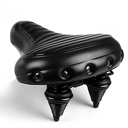 INBIKE Quilted Wide Commuter Bike Saddle 6.7"*5.9"*2.7", designed with an extra wide stance for full support and updated with a large, pressure relieving cutout, this easy rider saddle is perfect for short rides around town or long leisurely rides on the bike path. Large cutout, ample foam padding and elastomer spring suspension soaks up the bumps, eliminates stress on the body and keeps you riding comfortably.Feature