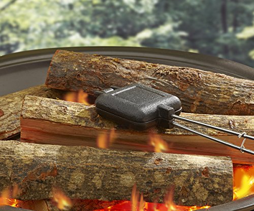 MR. BAR-B-Q Cast Iron Sandwich Cooker with Wood Handle, Black