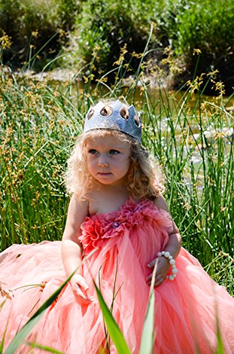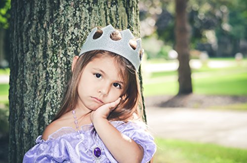 This adorable and comfortable crown comes in glittery silver. Let your prince or princess play dress up with friends, use a great photo prop or add to a cake smash outfit. Crown is 3 inches tall. Circumference is 19 inches unstretched and 22 inches stretched.