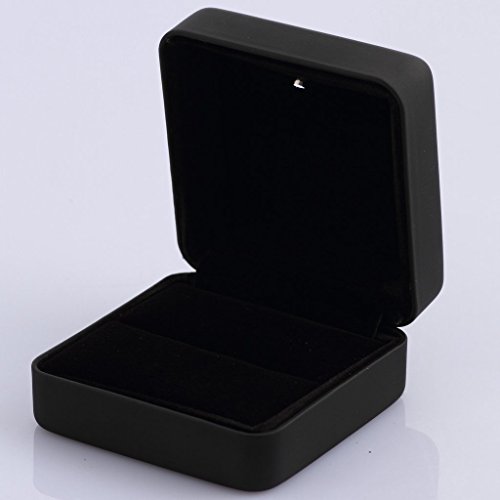 -. Feature : Size:2-1/2"(W) x 2-1/4"(L) x 1-7/8"(H) / Note: box only, ring is not included! / Premium Rubber paint, Velvet insert, Metal Hinge / Perfect for engagement ring, wedding bands,studs earing.Exclusively / With white color LED light which starts automatically when opening the box, The light makes the ring sparkling. Battery included