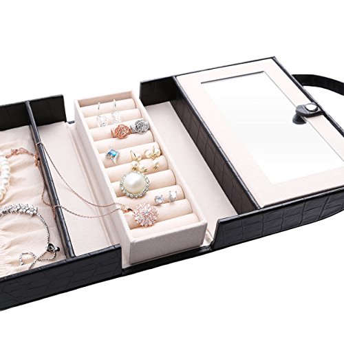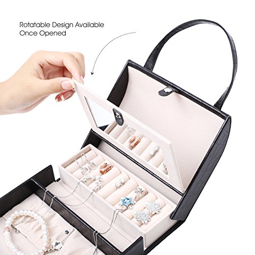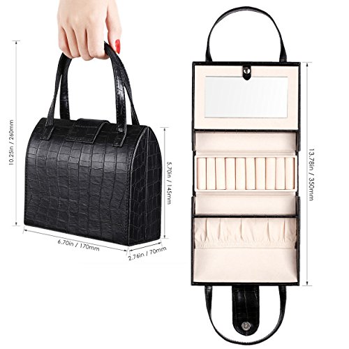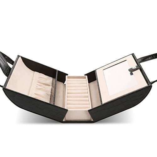 -. Binding : Kitchen -. Brand : J.Rosée -. Color : Black -. Department : women -. EAN : 0608807069345 -. Feature : ❤ -METERIAL:Made of black faux leather with alligator pattern and beige claimond veins lining. / ❤ -DESIGN:Compact handbag designed to organize your jewelry and make it a fashionable jewelary storage.Wherever put it on your table or hang on the wall,it will be a great versatile item to decorate. / ❤ -SRUCTURE:Display Storage Case for rings earrings necklace with mirror. Easy to open and close with a hidden button. / ❤ -DIMENTIONS:6.69*5.7*2.76 inches,convenient for you to carry when go out for special occations like traveling that needs carry on various jewelries. / ❤ -AFTER SALES: Order today,you will be protected by 3 months no questions asked money back guarantee. -. IsAutographed : 0 -. Label : J.Rosée -. Manufacturer : J.Rosée -. Model : KFP6HG9 -. MPN : B01M3UUUMG -. PackageQuantity : 1 -. PartNumber : B01M3UUUMG -. ProductGroup : Jewelry -. ProductTypeName : HOME -. Publisher : J.Rosée -. Size : 30*20*8cm -. Studio : J.Rosée -. Title : J.Rosée Jewelry Case Organizer Portable Vintage Travel Bag with Velvet Liner -. UPC : 608807069345