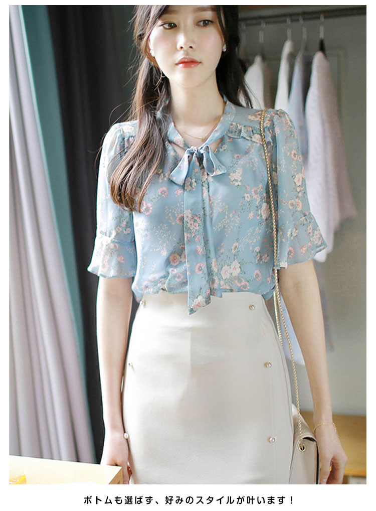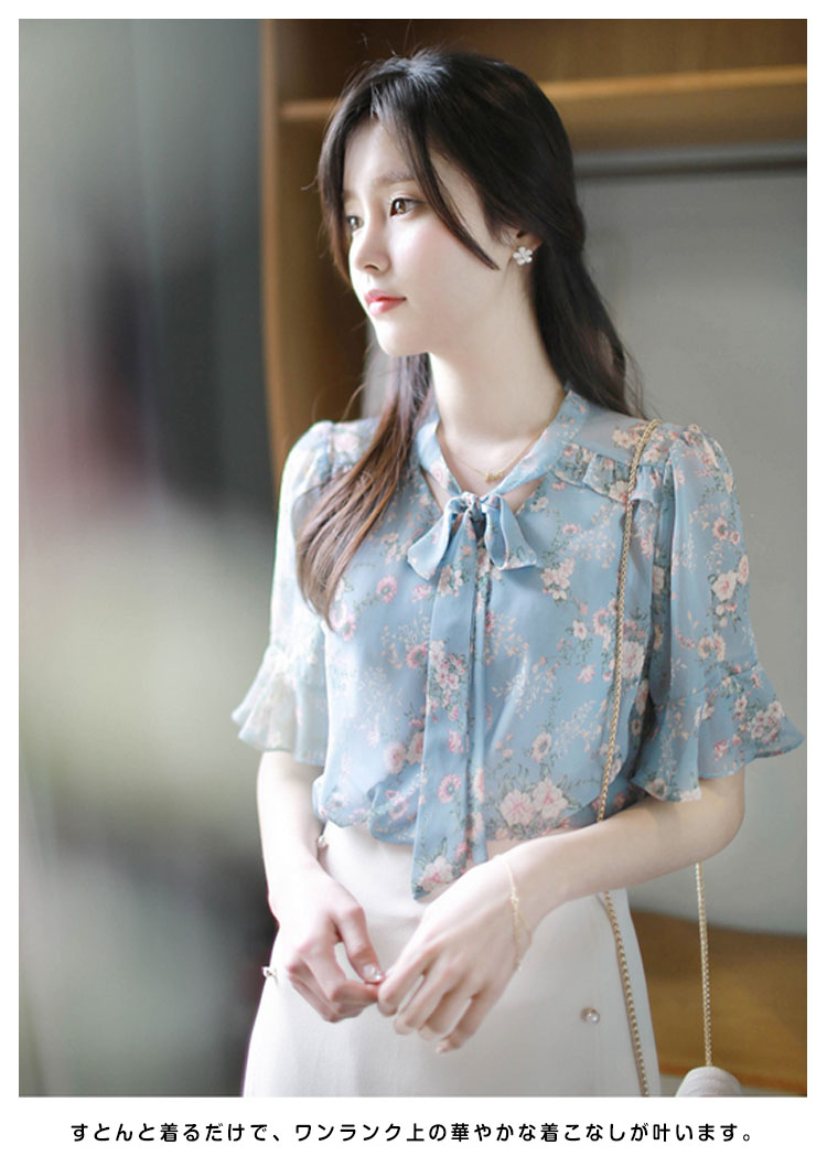 | 甘すぎない花柄が新鮮な、フェミニンブラウス。すとんと着るだけで、ワンランク上の華やかな着こなしが叶います。ゆったりとしたフレア袖で女性らしいふんわり感をプラスしました。ボトムも選ばず、好みのスタイルが叶います!春夏の装いにフェミニンな存在感をプラスしてくれるブラウスを、ぜひお試しください。 | |