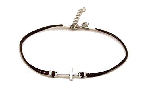 -. Title : Cross anklet, ankle bracelet with silver cross charm, christian catholic jewelry, brown cord, gift for her, bridesmaids gift