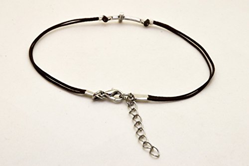 -. Feature : 8.5 inches plus 1.5 inch chain extension / Dark brown wax cord / Tibetan silver (zinc alloy metal) / Clasp closure / adjustable