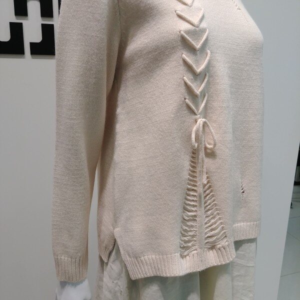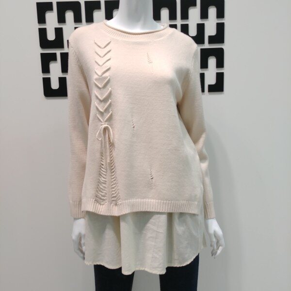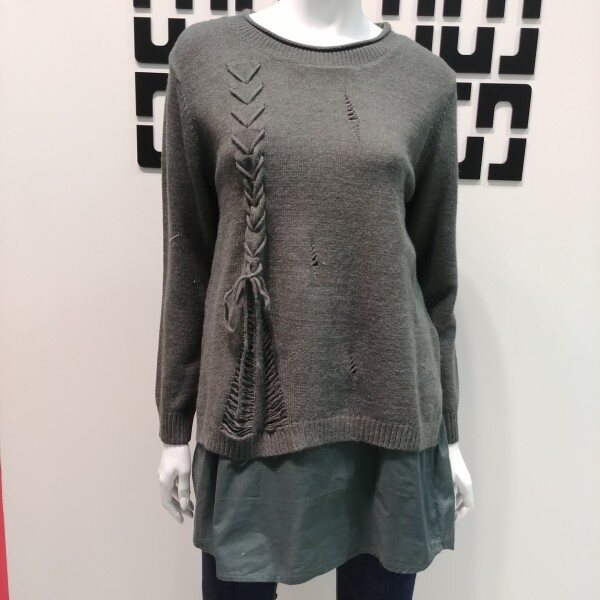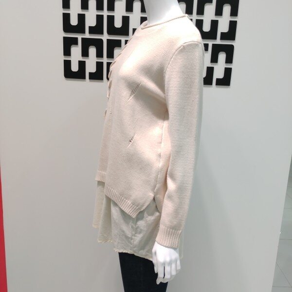 기본 니트 풀오버에 우븐 패치가 들어가 레이어드 하여 코디해 입은듯한 디자인으로 멋스러운 디자인 입니다 간절기에 입기 좋은 두께로 나왔으며 끈 디테일이 디자인의 포인트가 되어 스타일리쉬한 멋을 더해 줍니다 힙을 덮는 기장으로 체형 커버하기 좋아 데일리룩 으로 입기 좋습니다 ★28 인치기장 입니다 ★