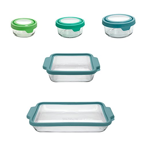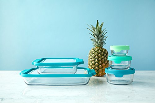 Anchor Hocking TrueFit Bakeware and TrueSeal Glass Food Storage Containers with Airtight Lids, Mixed Blue, 10-Piece Set