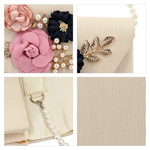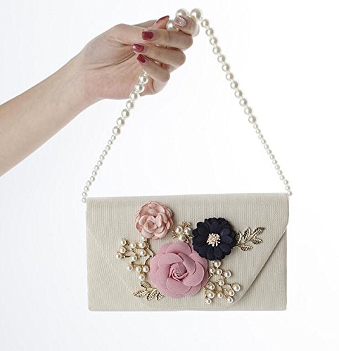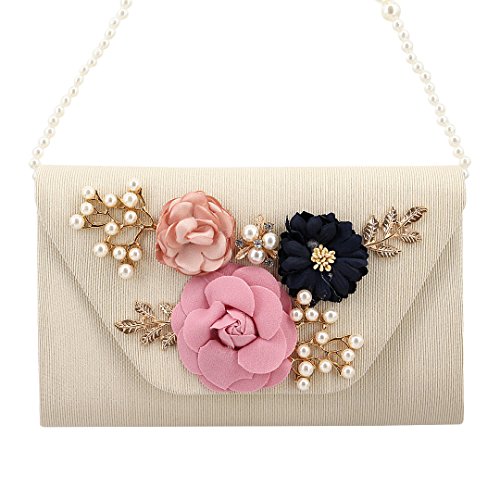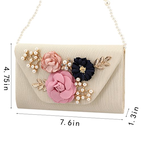 Candice Women Elegant Artificial Pearl Petals Clutch Evening Bag Envelope Shoulder Bag for Party Wedding