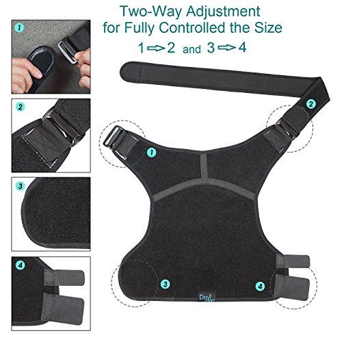 - YOU WILL GET: 1 pc Shoulder Brace, User Manual – “How to wear it” and a Video with 12 exercises which will help with your shoulder pain relief, Rotator Cuff, Frozen Shoulder, Dislocated AC Joint, Bursitis, Labrum Tear, Soreness, Sprain and help you restore your shoulder