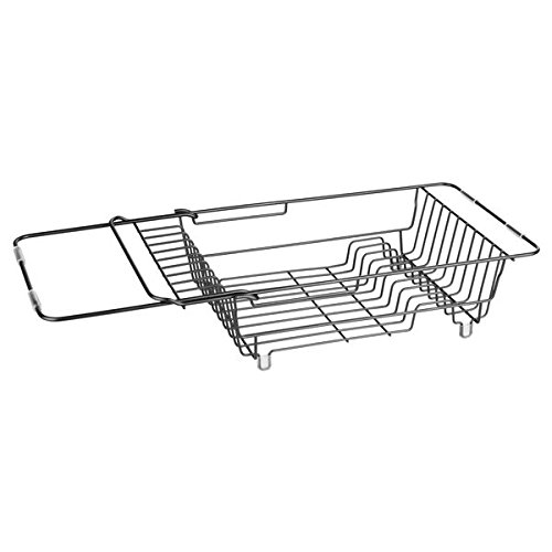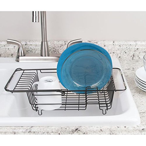 mDesign Kitchen Over-the-Sink Expandable Dish Drainer Rack for Drying Glasses, Silverware, Plates - Matte Black