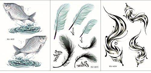 GGSELL GGSELL waterproof and nontoxic 3pcs in one package,it including 3pcs fishes,feathers and foxes temporary tattoos