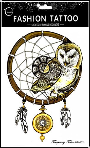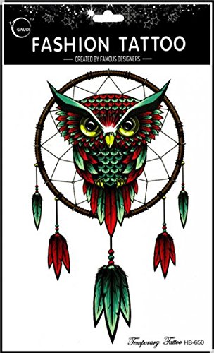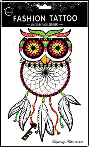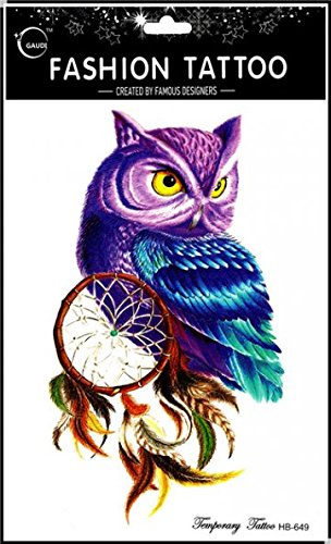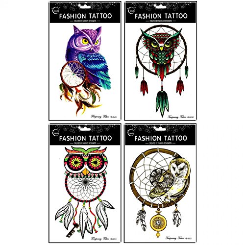 Grashine long last and realistic temp tattoo stickers 4pcs different colorful owl temporary tattoo in 1 package