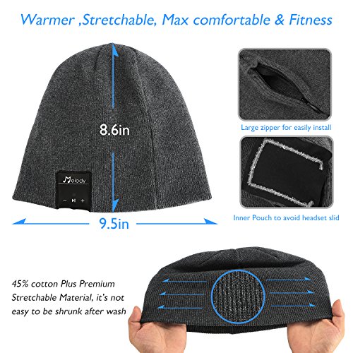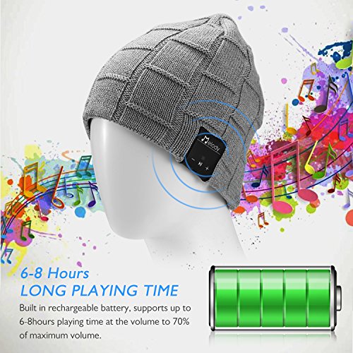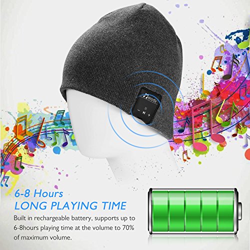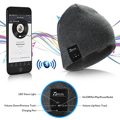 Bluetooth Beanie Hat,Topple Wireless V4.0 Superior Music Skully Beanie Hat Washable Knite Cap with headphone headset earphone Mic Audio Hands-free Calling for Running Excrise Gym Sports Fitness-Gray