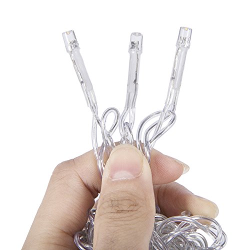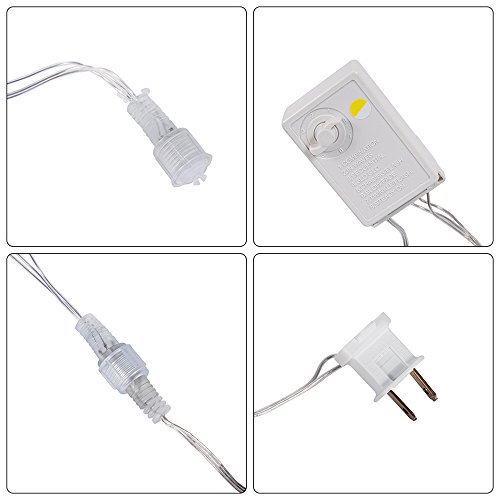 - Specifications: Plastic + Copper (Material); 300 pcs (LED Quantity); 9.84ft Length x 9.84ft Width (Dimensions); Warm White (Light Color); 18V (Wattage); 110V (Voltage); IP42 (Waterproof)