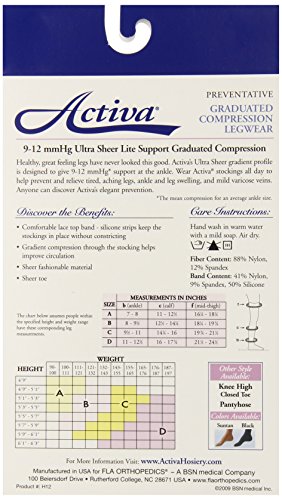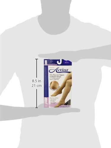 Product Description Activa Ultra Sheer 9-12 mmHg thigh high with lace top size A black. 0