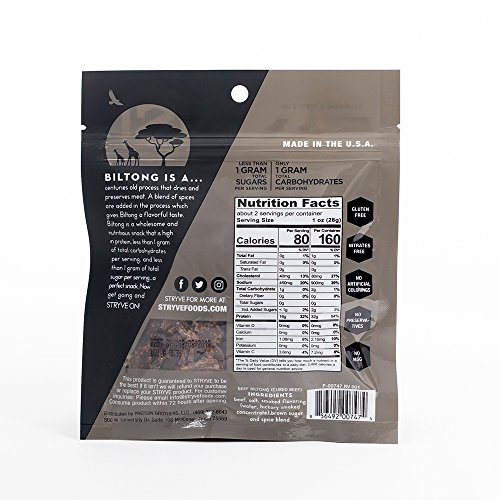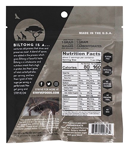 ReleaseDate : 2017-10-30 Studio : Stryve Foods Publisher : Stryve Foods Binding : Health and Beauty Product Description The bold hickory flavors of our Smoked Biltong is the easiest way to bring the backyard cookout to wherever you are. It's the same smokey flavors you love but without the carbs and fat. Grab your bag and Stryve on! 0