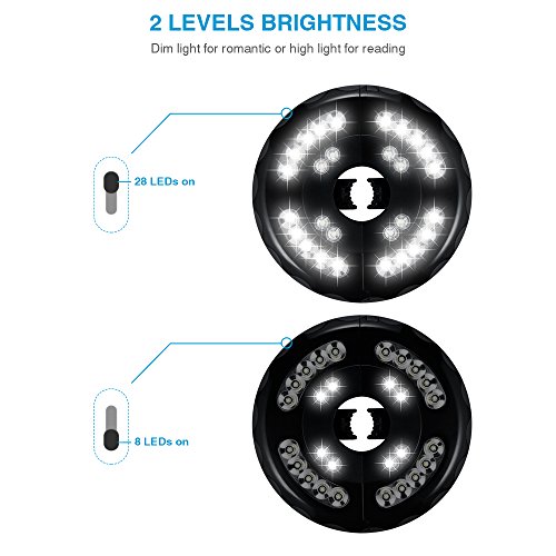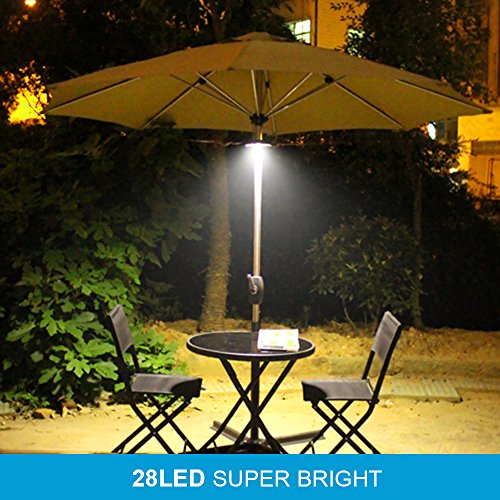 AMIR Rechargeable Patio Umbrella Lights, Cordless 28 LED Lights Outdoor, 2 Level Dimming Switch, Lamp for Patio Umbrellas, Camping Tents and other Outdoor Use - 2 Battery Inserted (White)