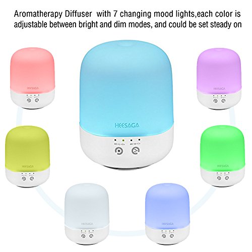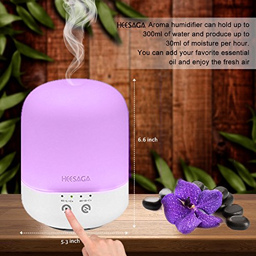 HEESAGA Essential Oil Diffuser 300ml, Aromatherapy Ultrasonic Cool Mist Humidifier with Touch Control and 7 Color Changing LED, Waterless Auto Shut-off